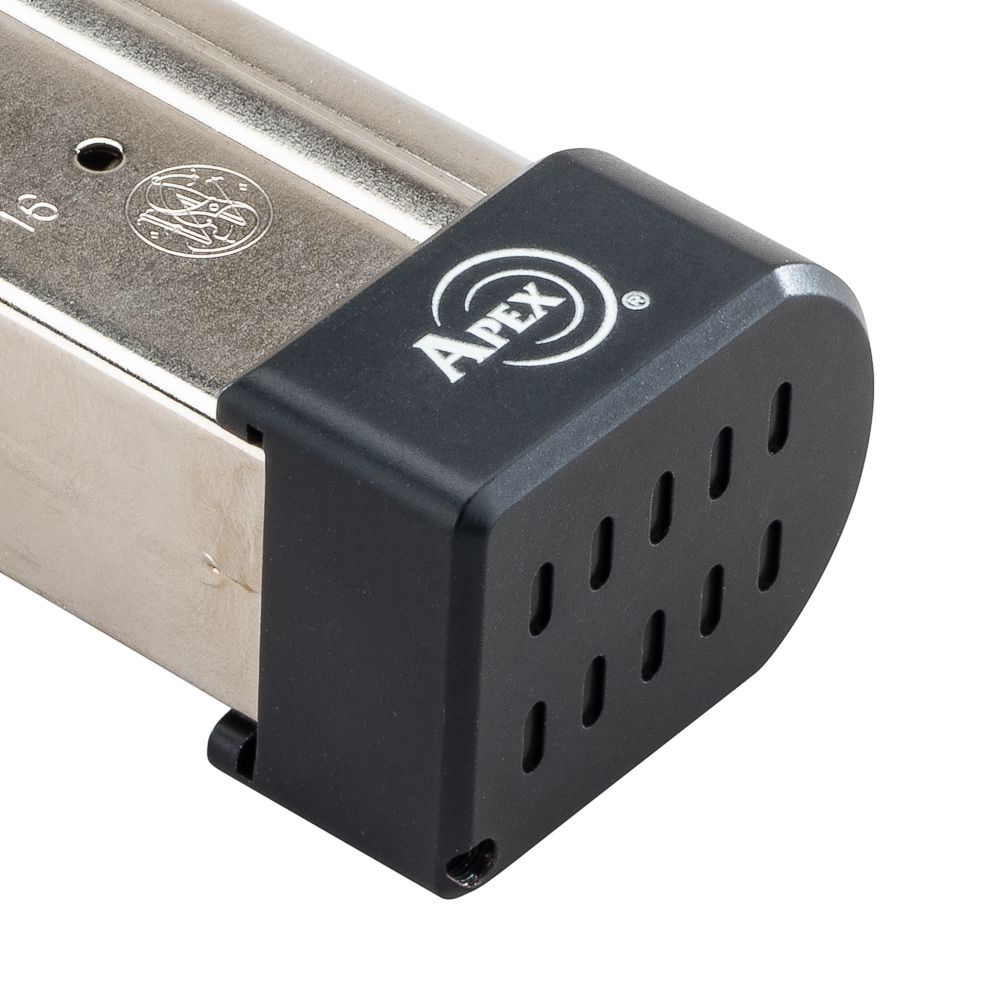 - Adds +3 rounds to 9mm standard magazines; +2 rounds to .40 S&W standard magazines