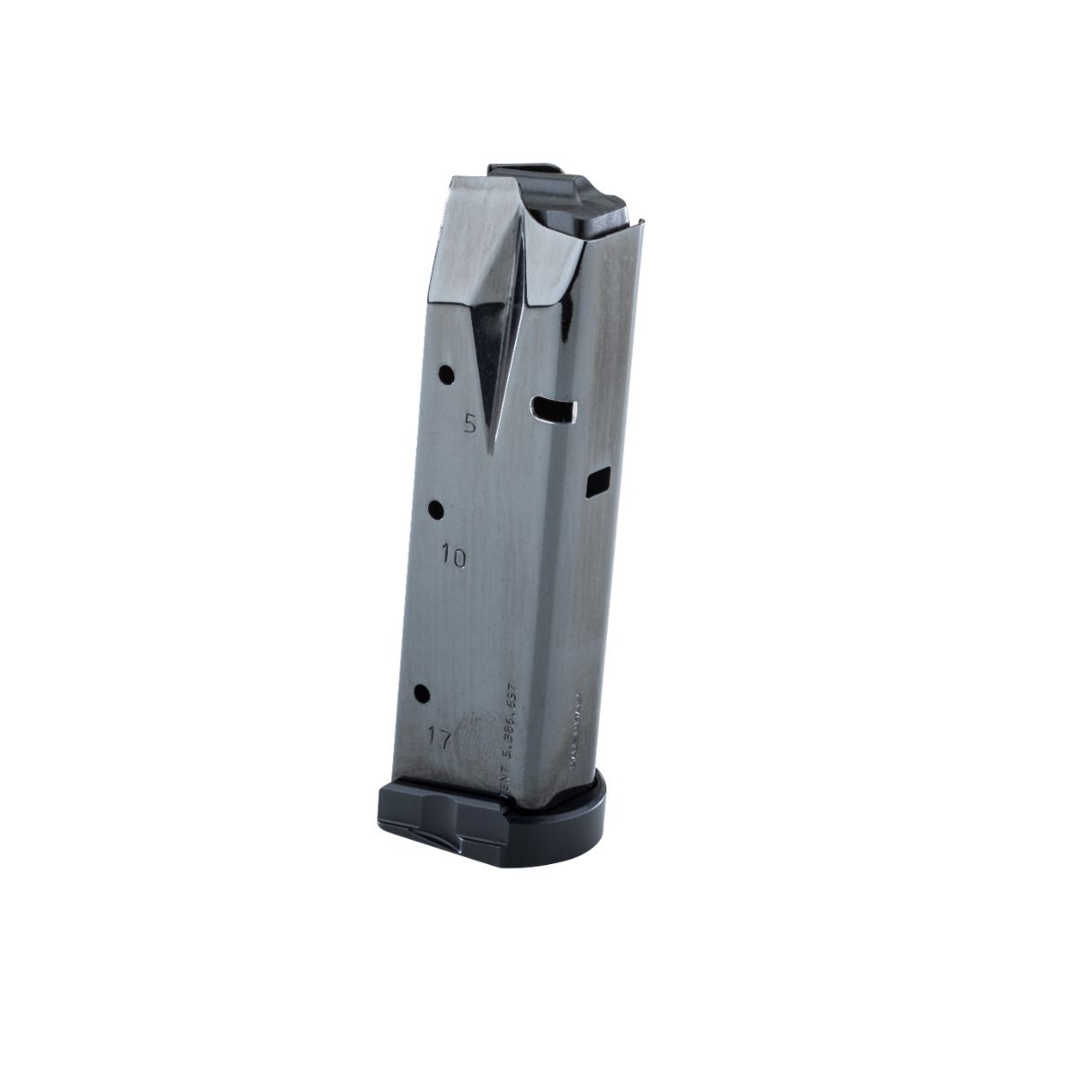 This magazine is a direct replacement for the standard 15-round SA-35 magazine, engineered specifically for pistols equipped with an Apex Tactical Magazine Well. The primary problem it solves is capacity restriction: it increases your on-board round count to 17 or 19 rounds while maintaining reliable feeding with quality domestic ammunition. The base pad is blended to the frame contour of the Apex magazine well, providing an integrated grasping surface for emergency magazine extraction under stress.