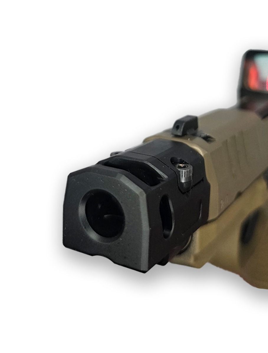 The MRAT Compensator for the FN Reflex is a direct thread-on muzzle device engineered to reduce muzzle rise by 30–40% (ammunition-dependent) via a unique angled port design. This component redirects barrel gases upward, counteracting muzzle climb and felt recoil to enable faster sight acquisition during rapid or continuous fire sequences. The primary problem it solves: managing the Reflex’s inherent snap in recoil impulse, particularly with defensive or +P loads, while minimizing trigger pinch caused by the slide cycling against the trigger finger between shots.